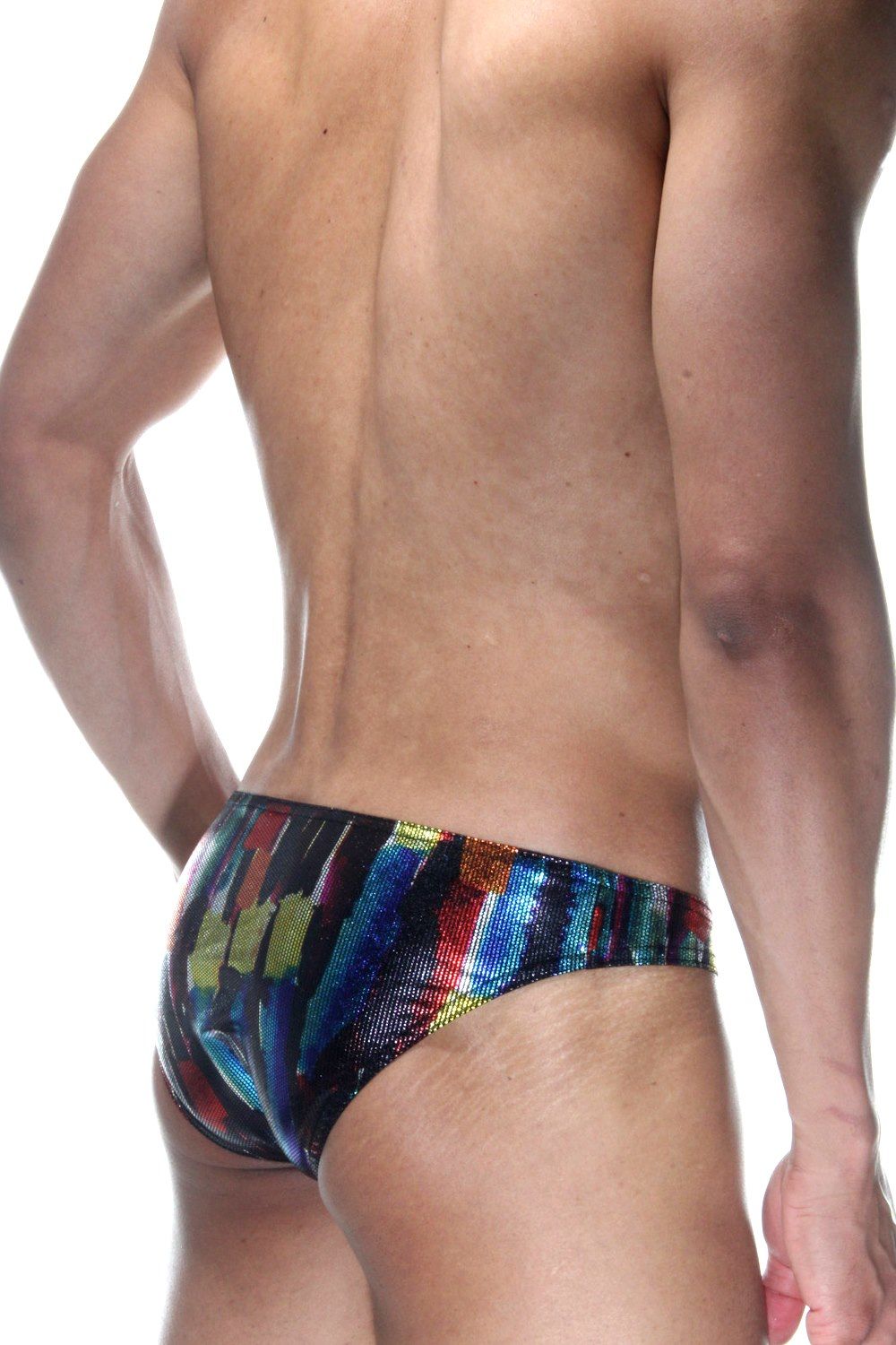 Блестящие мужские трусы-слипы с узким бочком.
