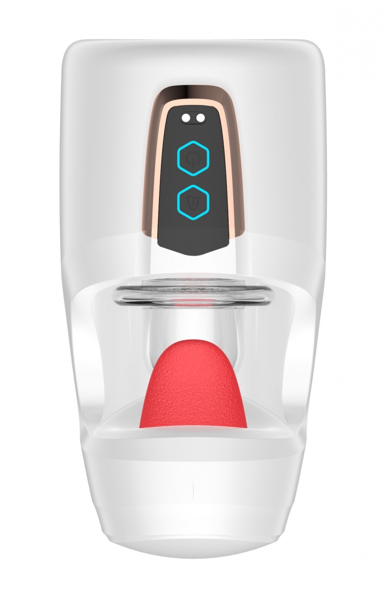 Белый мастурбатор с язычком и возвратно-поступательными движениями. Мягкий и эластичный язычок приласкает головку полового члена. 10 режимов фрикций позволят выбрать ритм по настроению.
