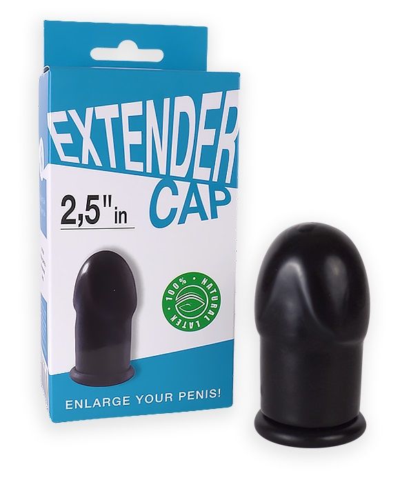 Чёрный латексный удлинитель пениса 2.5 in. Прирост длины - 6,3 см.