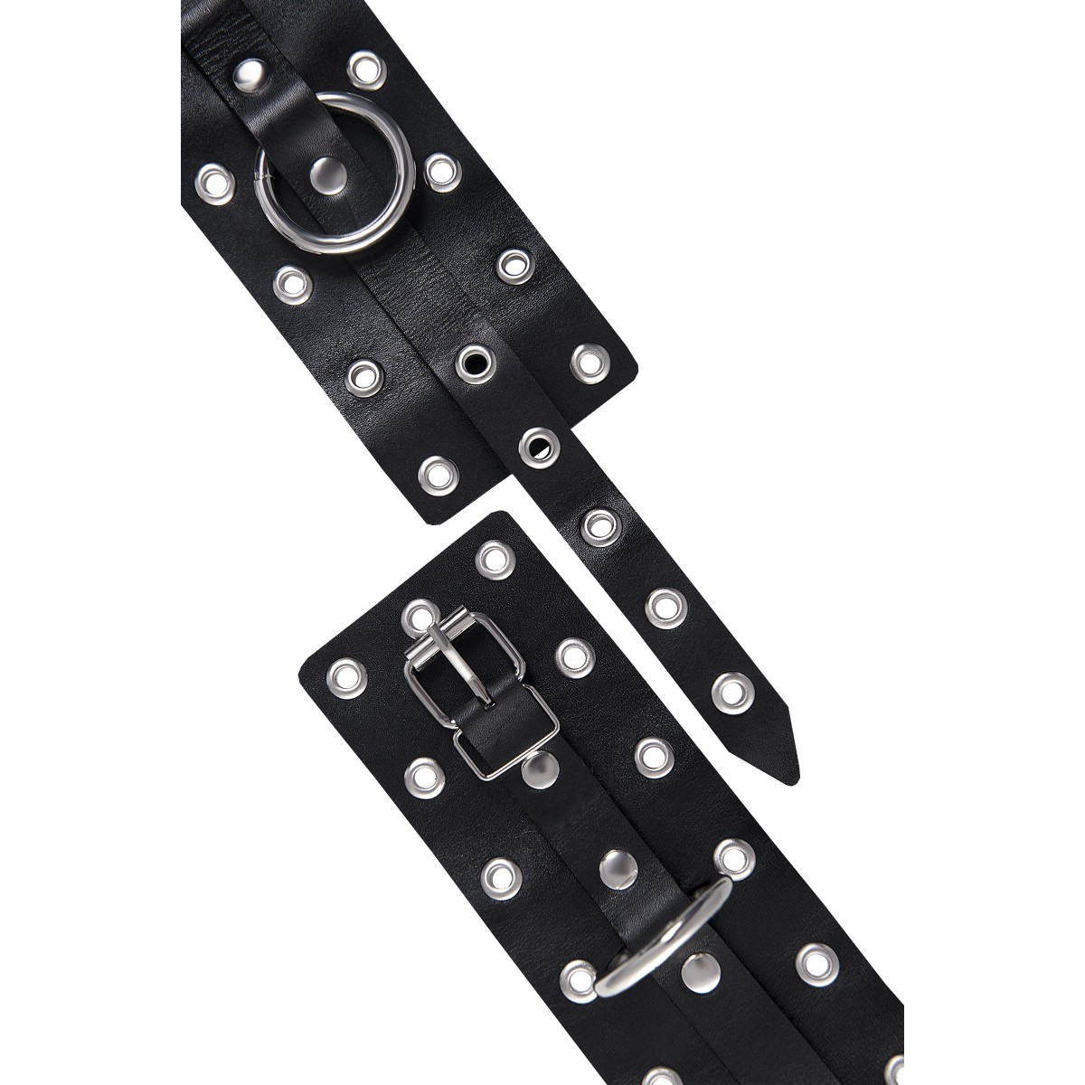 Эти однослойные кожаные наручники с люверсами могут стать стильным аксессуаром, а могут послужить вашим целям по своему прямому назначению. Частичное обездвиживание и невозможность двигать руками дают вам полную власть над партнером – взрослые игры для взрослых. Наличие двух колец и карабинов, соединенных между собой металлической цепочкой, позволяет использовать изделие как раздельно – аксессуар-манжеты, так и как наручники для фиксации. К широким металлическим кольцам также можно присоединить и другие аксессуары при помощи карабинов. Благодаря универсальному размеру наручники могут использоваться и мужчинами, и женщинами. Размер легко регулируется с помощью металлических пряжек, органично вписывающихся в общий стиль. Длина манжет - 20 см, ширина - 6,5 см. Длина сцепки - 13 см.