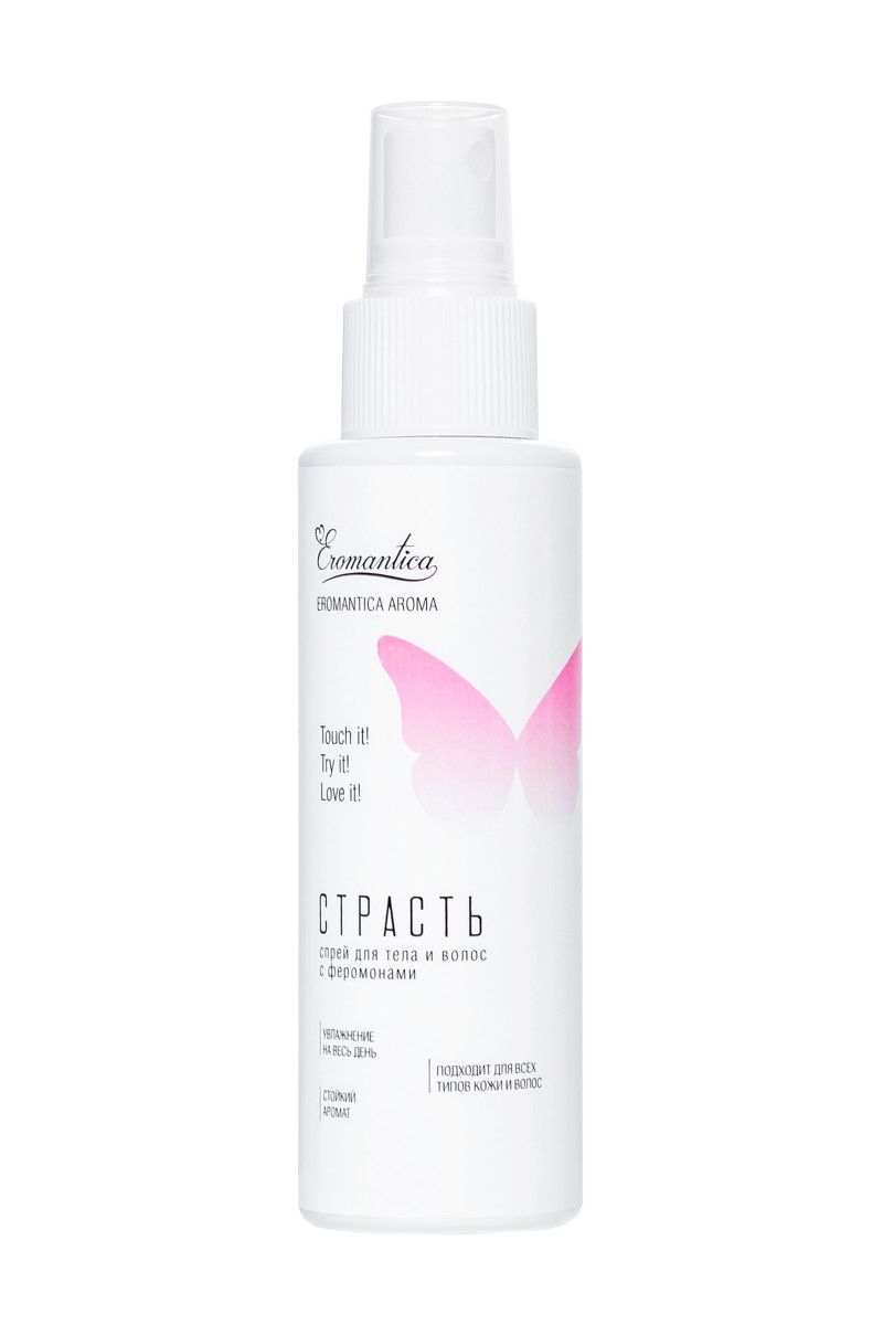 Манит, соблазняет…. С новым спреем из коллекции Eromantica Aroma «Страсть» ты станешь особенно привлекательной в глазах окружающих и почувствуешь уверенность в любой компании, благодаря природным феромонам и аромату, гарантирующему море желания и страсти... Освежает, увлажняет лицо, тело и волосы. Оставляет шлейф аромата терпких объятий и страстных свиданий.