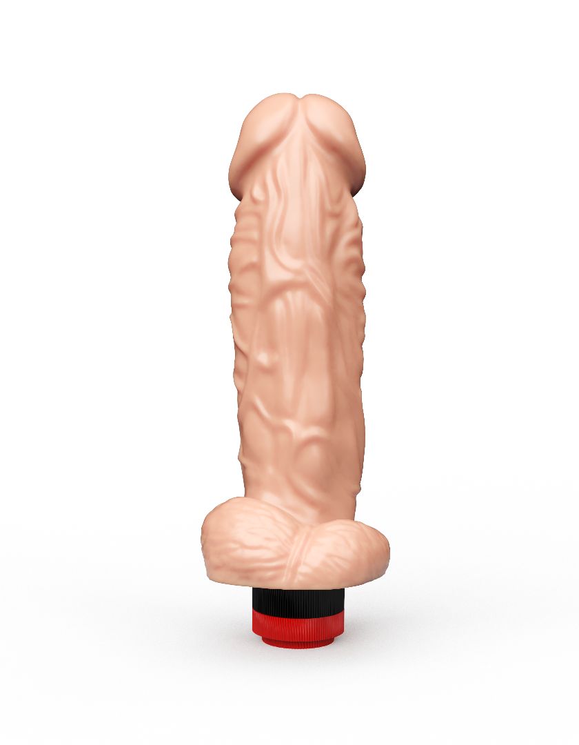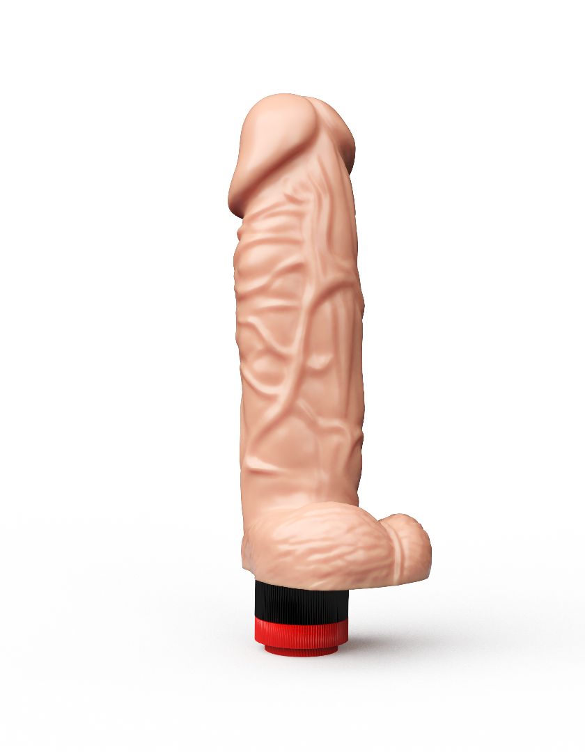 Если вам хочется ласк большой и мощно вибрирующей игрушки, эта модель со встроенным пультом-колёсиком – отличный бюджетный вариант. Реалистичный вибромассажёр выполнен из приятного на ощупь материала и отличается от конкурентов нешуточными размерами. Крупный ствол с анатомическим рельефом и большой головкой обещает: стоит вам ввести его в лоно по самую мошонку, как возбуждения будет уже не унять.